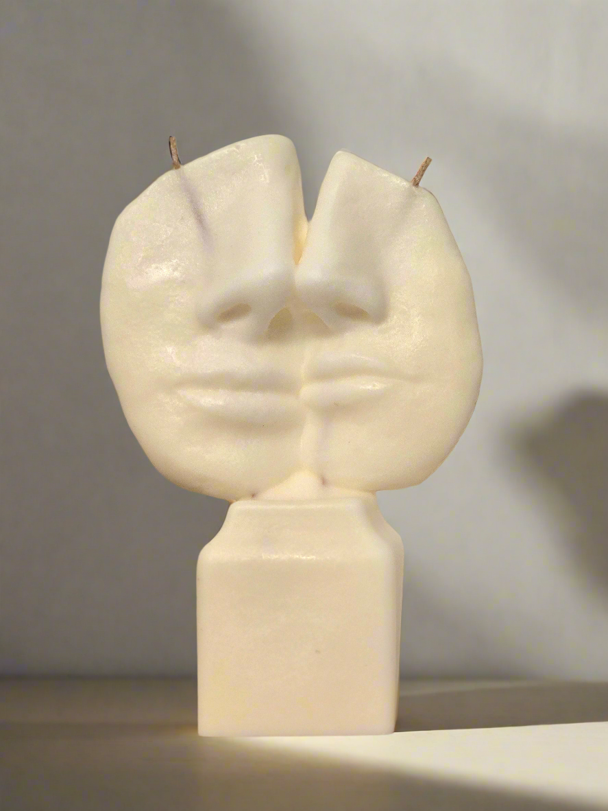 A romantic symbol of love and connection, this hand-poured candle features two faces gently meeting in a tender moment. Perfect for gifts, decor, or setting a warm, intimate mood.